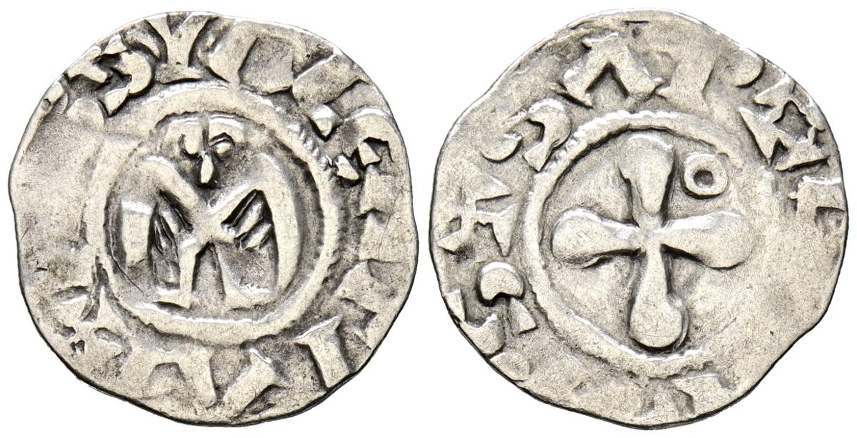 FRANCIA, Obispado de Valence y Die (Anónimo). Dinero. (Ar. 0,88g/18mm). 1157-1276. (Poey D'Avant 4690). Anv: Angel de frente, alrededor leyenda: URBS VALENTIAI. Rev: Cruz, alrededor leyenda: S.APOLLINARS. MBC+.