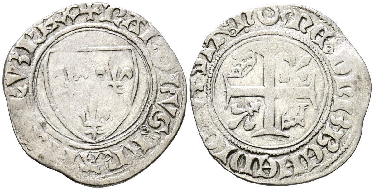 FRANCIA, Carlos VI. Blanc Guénar. (Ar. 3,08g/26mm). 1380-1422. París A. (Dupplessy 377a). MBC.