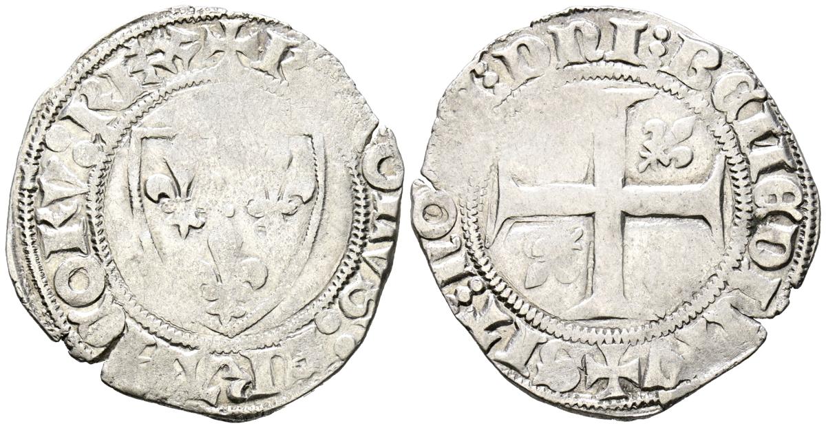 FRANCIA, Carlos VI. Blanc Guénar. (Ar. 3,00g/27mm). 1380-1422. París A. (Dupplessy 377a). MBC-.