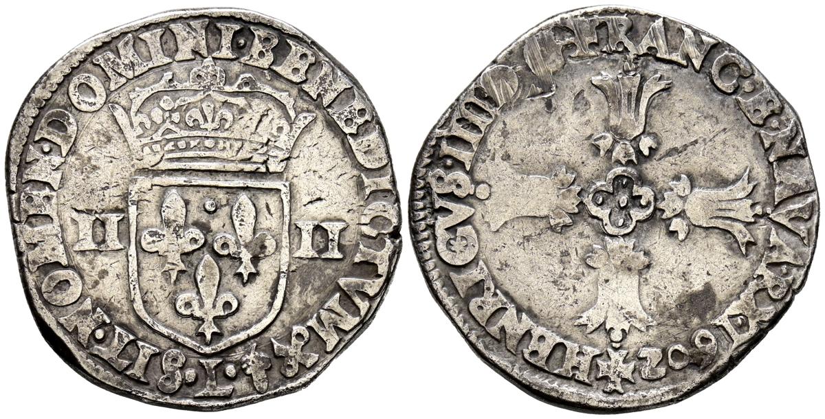 FRANCIA, Enrique IV (1589-1610). 1/4 Escudo. (Ar. 9,36g/28mm). 1602. Bayona. (Km#1.2). MBC-.