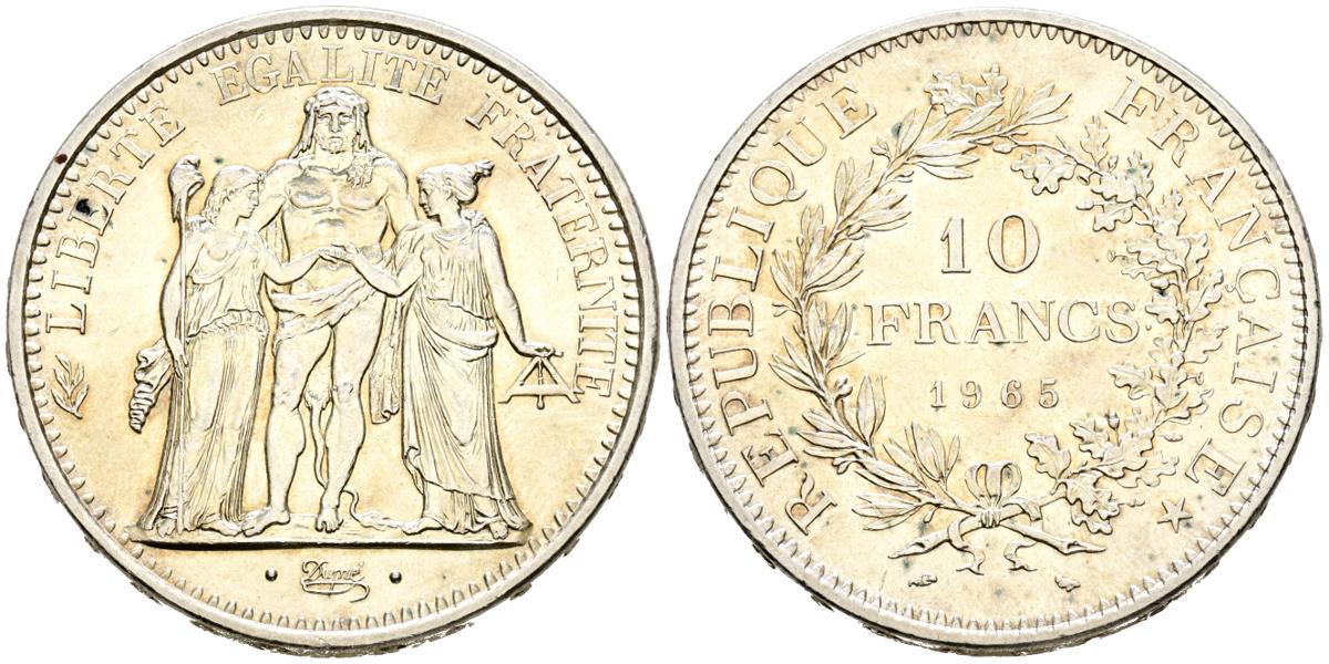 FRANCIA. 10 Francos. (Ar. 25,00g/37mm). 1965. (Km#932). EBC.