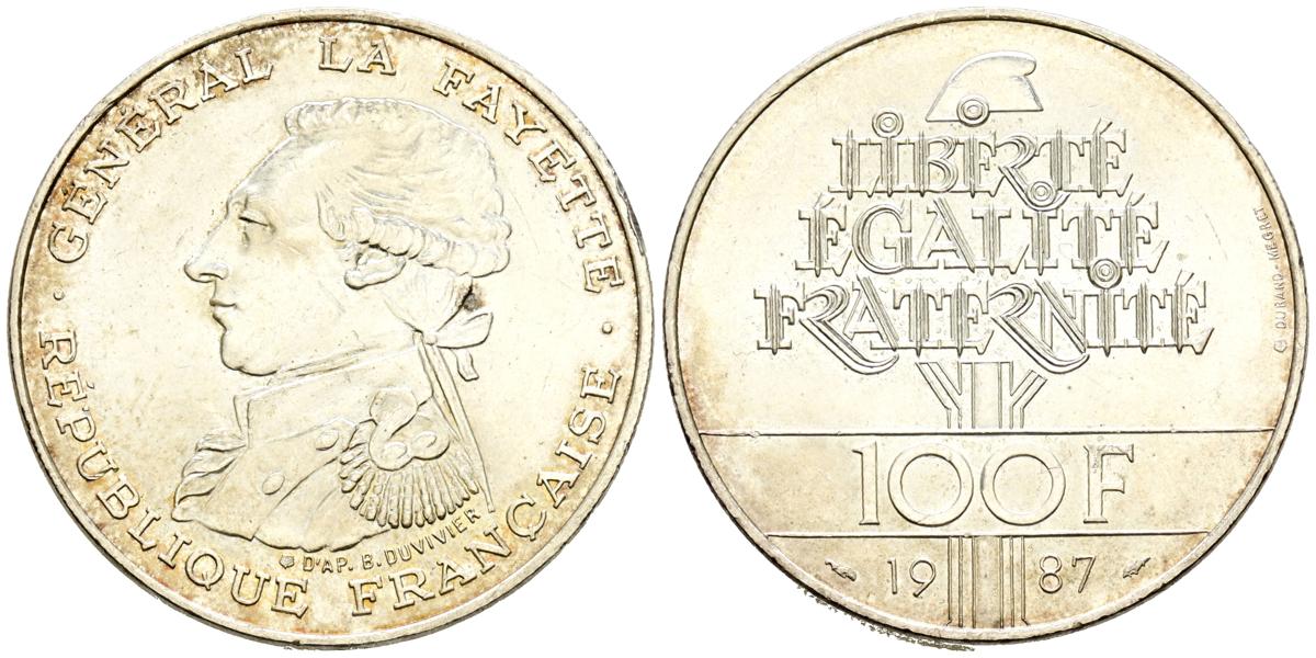 FRANCIA. 100 Francs. (Ar. 15,00g/31mm). 1987. París. (Km#962). SC.