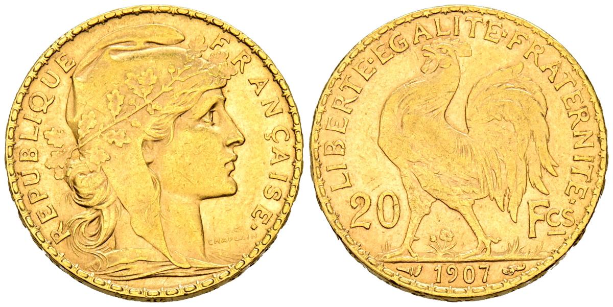 FRANCIA. 20 Francos. (Au. 6,48g/21mm). 1907. III República. (Km#847). EBC.