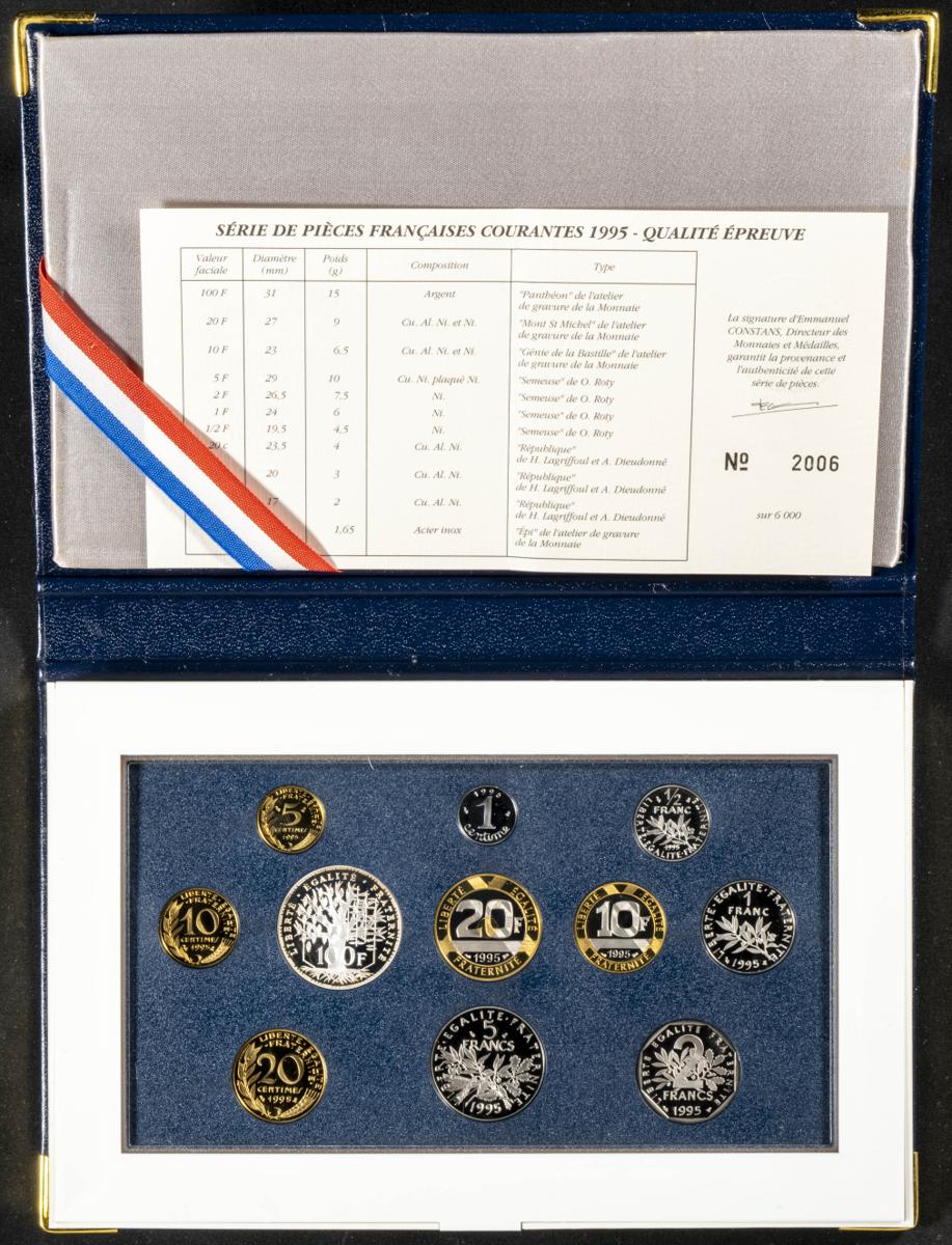 FRANCIA. Set oficial de la Monnaie de París con 11 monedas de valores comprendidos entre 1 Centime y 100 Francs (en plata). Año 1997. PROOF. Incluye estuche oficial y certificado de autenticidad.