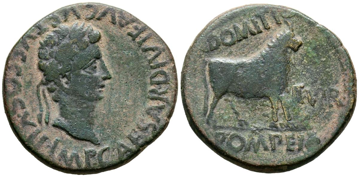 CELSE (Velilla del Ebro, Zaragoza). As. (Ae. 12,19g/29mm). 27 a.C.-14 d.C. (FAB-811). Anv: Cabeza de Augusto laureada a derecha, alrededor leyenda: IMP CAESAR DIVI F AVGVSTVS COS XII. Rev: Toro a derecha, encima leyenda: CN DOMIT, debajo: C POMPEI, a la izquierda: C V I CEL, a la derecha: II VIR. MBC-.
