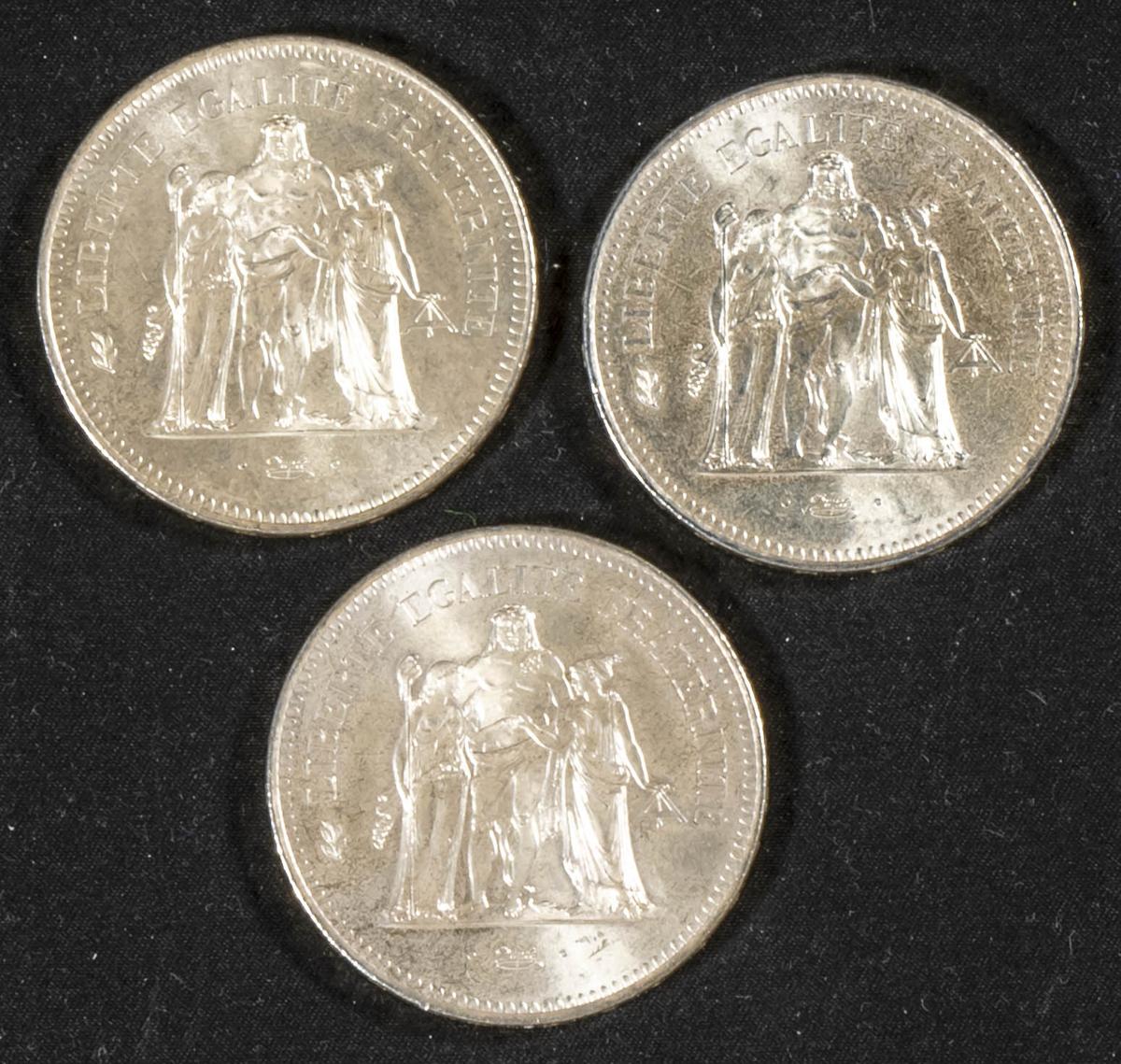 FRANCIA. Bonito conjunto de 3 monedas de 50 Francos acuñadas en 1975, 1976 y 1978. . Excelente nivel de conservación general. A EXAMINAR.
