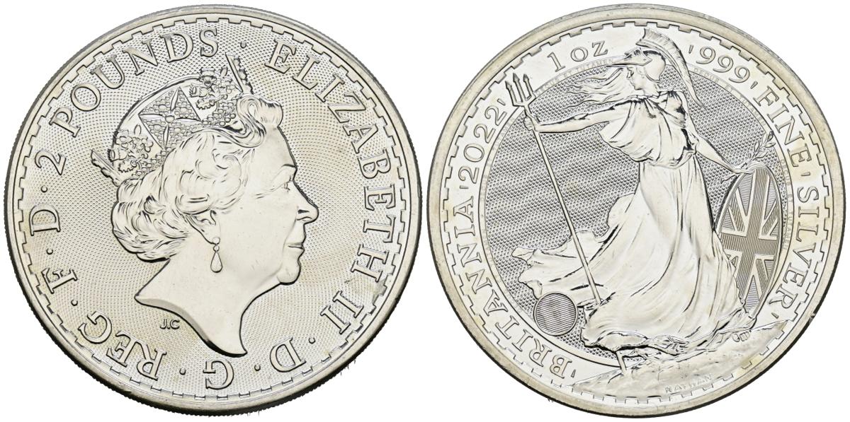 GRAN BRETAÑA. 2 Pounds (Ar. 31,21g/39mm). 2022. Britania de pie. SC.