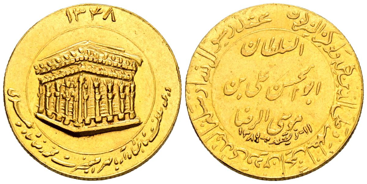 IRAN, Mohammed Riza Pahlevi (1941-1979). Medalla. (Au. 5,14g/19mm). 1348H (1970). Santuario de Ali ibn Musa al-Rida en Mashhad. EBC+.