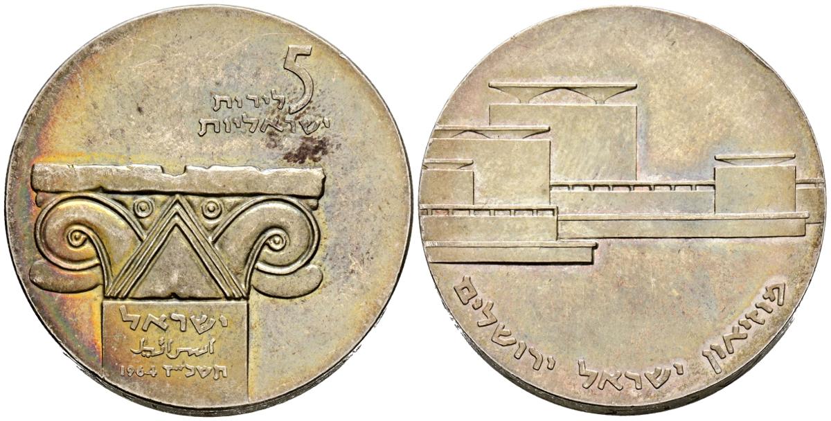 ISRAEL. 5 Lirot. (Ar. 25.10g/34mm). 1964. 16 Aniversario del Estado de Israel. (Km#43). EBC. Bonita pátina.