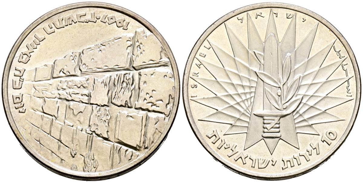 ISRAEL. 10 Lirot. (Ar. 26,02g /37mm). 1967. Muro de las Lamentaciones. (Km#49). EBC.