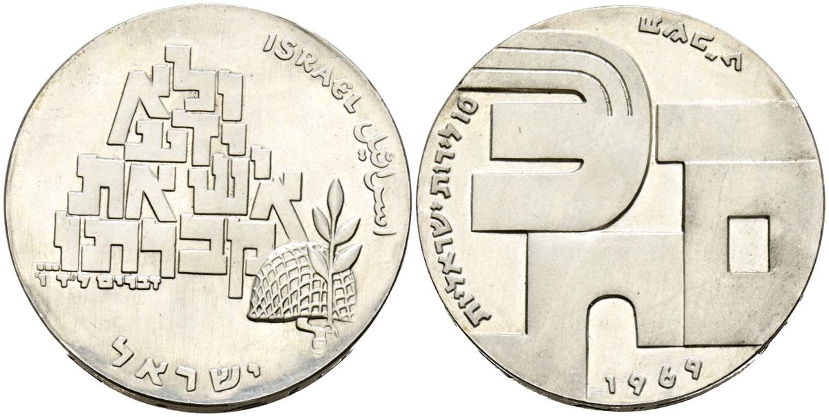ISRAEL. 10 Lirot (Ar. 26,01g/37mm). 1969. 21 Aniversario de la Independencia. Acuñada en San Francisco. (Km#53). EBC. Rayitas.