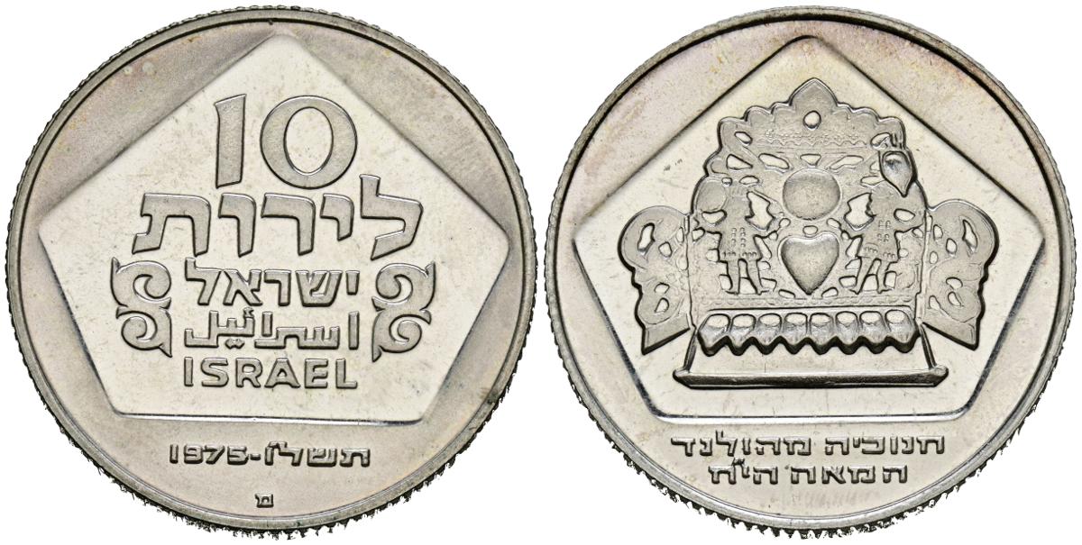 ISRAEL. 10 Lirot. (Ar. 20,00g/34mm). 1975. Jerusalén. (Km#84.1). Canto estriado. EBC+.