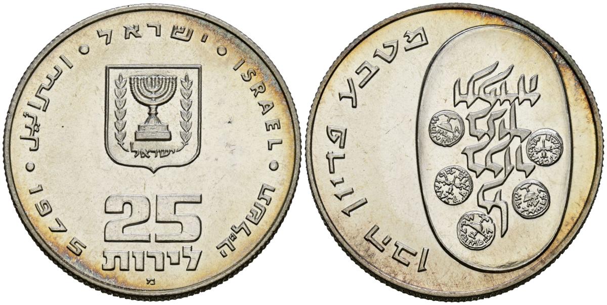 ISRAEL. 25 Lirot (Ar. 25,81g/37mm). 1975. Jerusalén. Pidyon Haben. (Km# 80). EBC+.