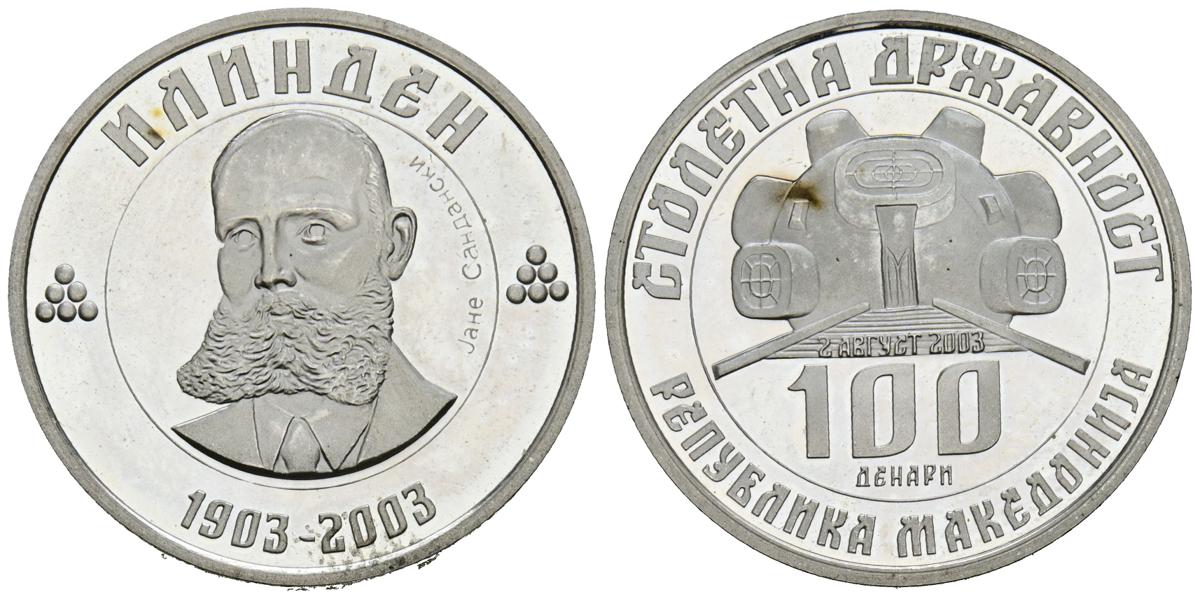 MACEDONIA. 100 Denari (Ar. 6,96g/24mm). 2003. Jane Sandanski. (Km#28). PROOF. Muy escasa. Sólo 1000 unidades acuñadas.