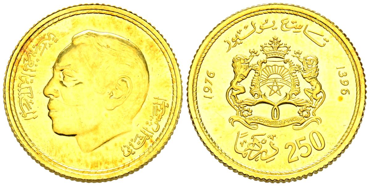 MARRUECOS. 250 Dirhams. (Au. 6,58g/21mm). 1976. Aniversario nacimiento del Rey Hassan II (9 Julio 1976). (Km#Y66). SC.
