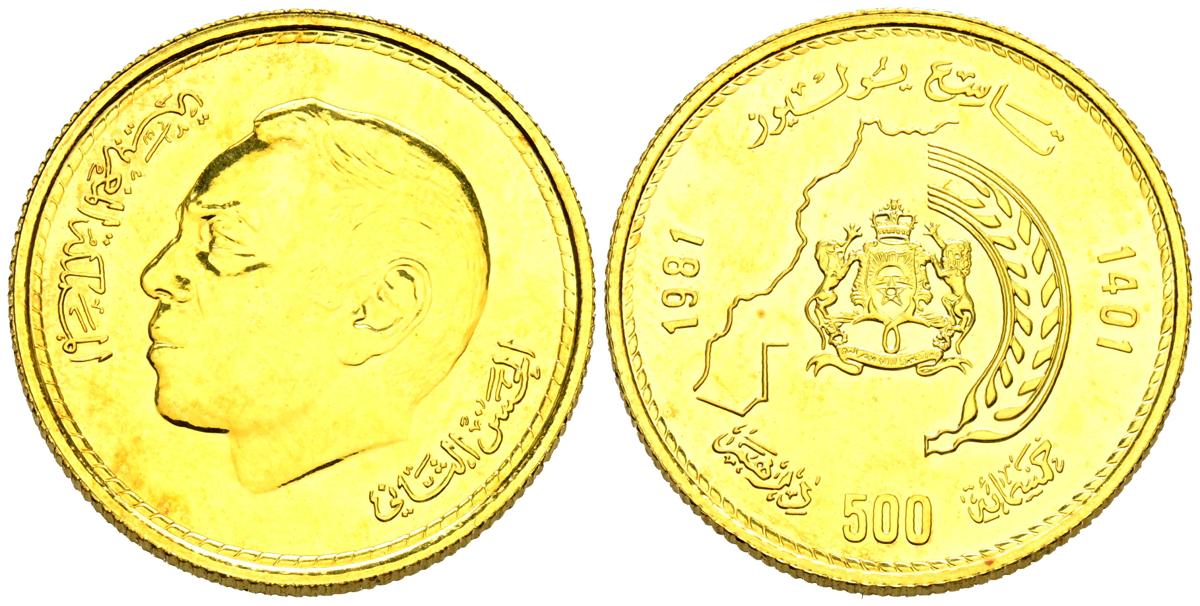 MARRUECOS. 500 Dirhams. (Au. 13,12g/26mm). 1981. Aniversario nacimiento del Rey Hassan II (9 Julio 1981). (Km#Y71). SC.