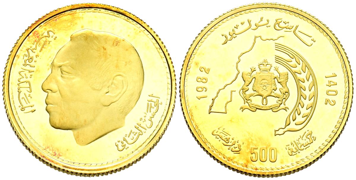 MARRUECOS. 500 Dirhams. (Au. 13,13g/26mm). 1982. Aniversario nacimiento del Rey Hassan II (9 Julio 1982). (Km#Y71). PROOF.