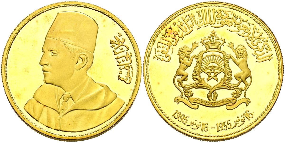 MARRUECOS. Medalla. (Au. 48,41g/38mm). 1995. Regreso del Exilio de Mohammed V. PROOF.