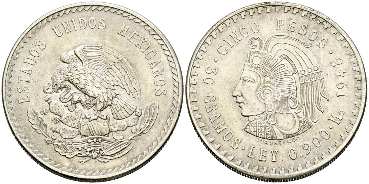 MÉXICO. 5 Pesos. (Ar. 30,069 /40mm). 1948. (Km#465). EBC.