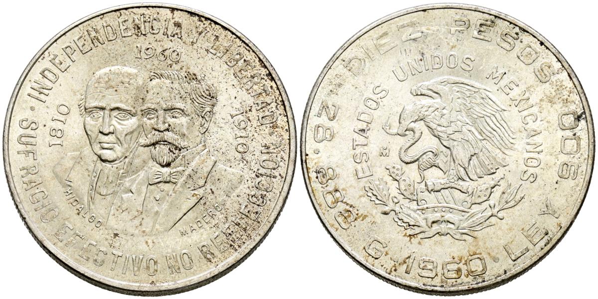 MÉXICO. 10 Pesos. (Ar. 28,74g/40mm). 1960. 150 Aniversario de la Independencia. (Km#476). EBC-. Puntos de óxido.