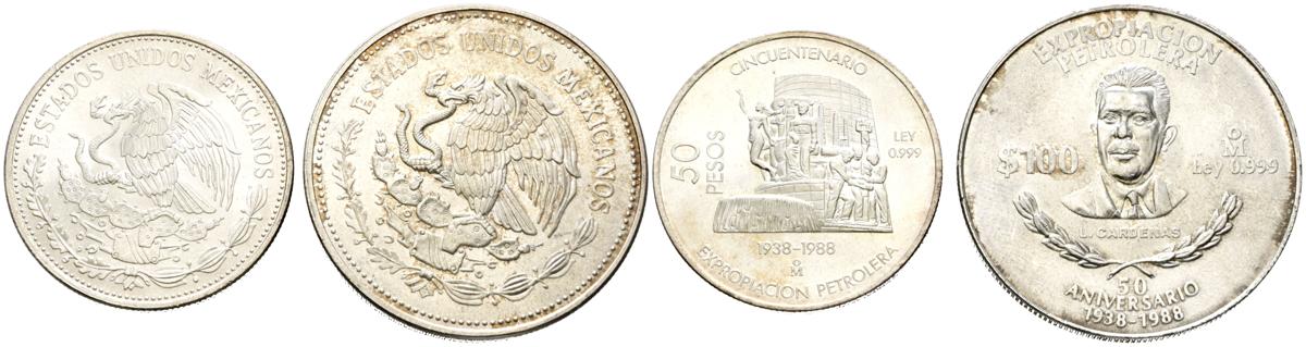 MÉXICO. Pareha de 50 y 100 Pesos conmemorativas de la Expropiación Petrolera. 1988. Excelente estado de conservación. Escasa tirada. A EXAMINAR.
