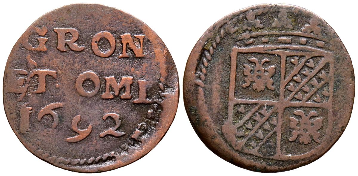 PAÍSES BAJOS. 1 Duit (Ae. 1,45g/21mm). 1692. Provincia de Groningen y Ommeland. (Km#35). MBC-.