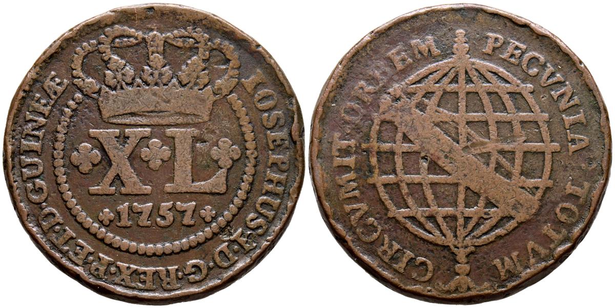 ANGOLA (Portuguesa). XL Reis (Ae. 28,12g/40mm). 1757. José I (1750-1777). (Gomes 04.03). BC+.