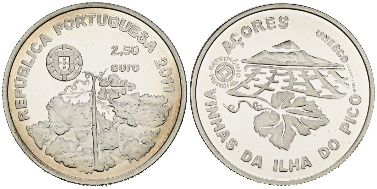 PORTUGAL. 2,5 Euros. (Ar. 12,05g/27mm). 2011. "VINHAS DA ILHA DO PICO". PROOF.