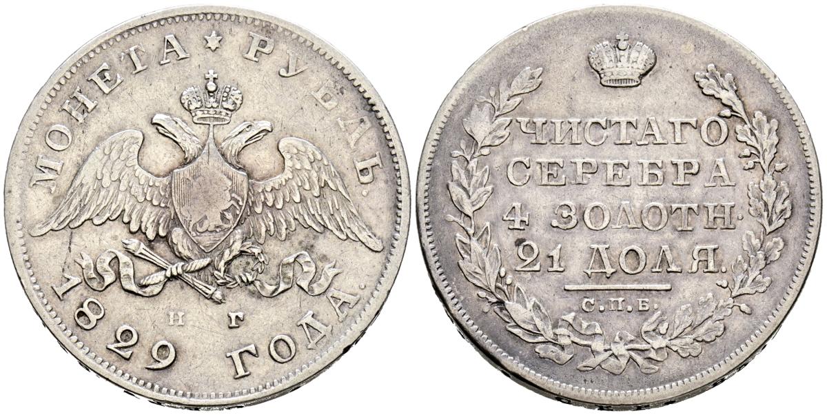 RUSIA. 1 Rublo (Ar. 20,22g/36mm). 1829. Nicolás I. San Petersburgo. (Km#161). MBC.