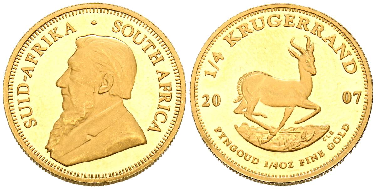 SUDÁFRICA. 1/4 Krugerrand (Au. 8,48g/22mm). 2007. (Km#106). PRROF. Leves rayitas.