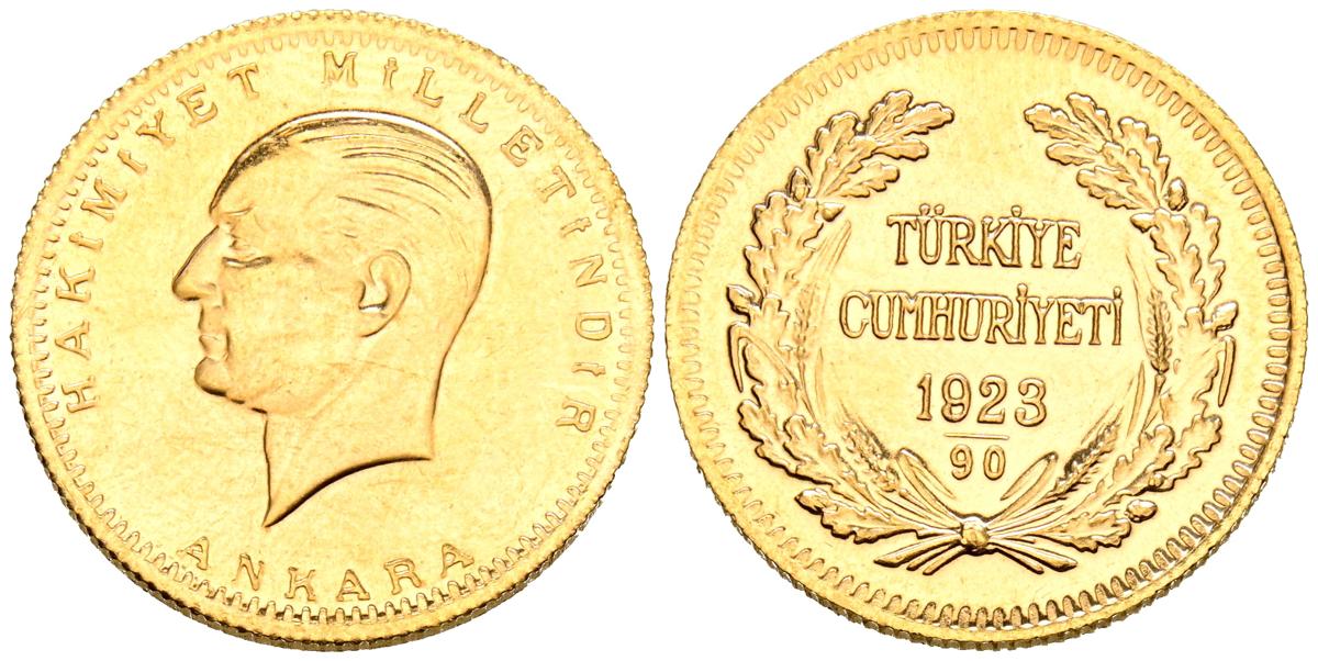 TURQUÍA. 100 Kurush (Au. 7,21g/22mm). 2013 (Año 90). Ankara. (Km#855). EBC+.