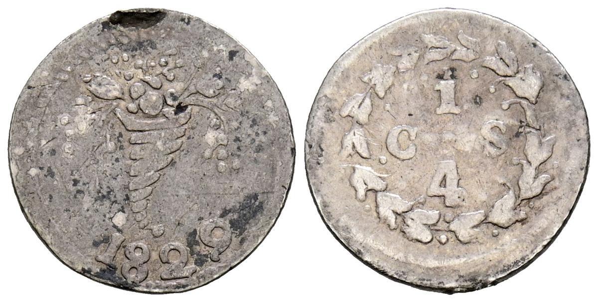 VENEZUELA. 1/4 Real. (Ar. 0,71g/13mm). 1829. Caracas. Época de la Gran Colombia. (Km#34). MBC-. Escasa