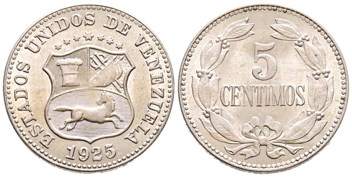 VENEZUELA. 5 Céntimos. (CuNi. 2,30g/19mm). 1925. Philadelphia. (Km#27). SC-.