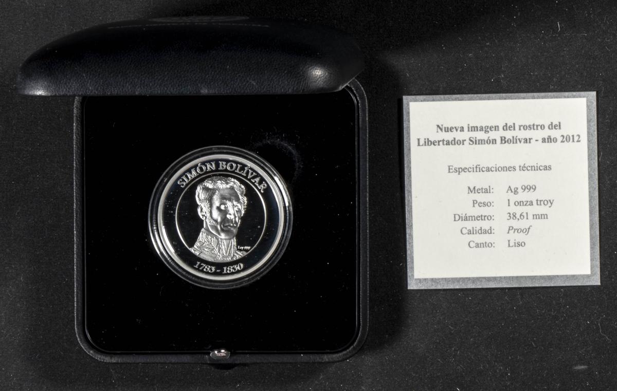 VENEZUELA. 1 Bolívar. (Ar. 31,10g/39mm). 2012. Banco central de Venezuela. Nueva imagen del libertador S. Bolívar. PROOF. Presentada en estuche oficial.