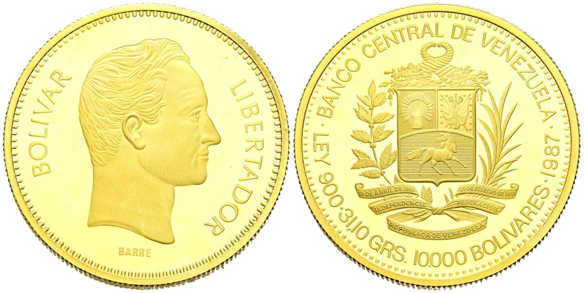 VENEZUELA. 10000 Bolívares. (Au. 31,01g/35mm). 1987. (Km#Y61). PROOF.