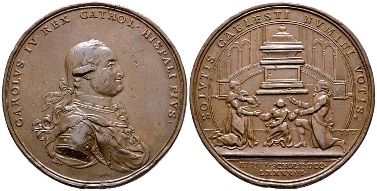 CARLOS IV (1788-1808). Voto de los Reyes y el Príncipe a San Fernando (Ae. 39,44g/48mm). 1796. Sevilla. Grabadores: Pardo (anverso) y J.B.A. (reverso). (V. 183). MBC.