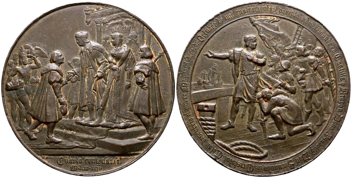 ALFONSO XIII (1885-1931). IV Centenario del Descubrimiento de América (Ae. 175,71g/70mm). 1892. Grabador: B. Maura. (V-556). MBC.