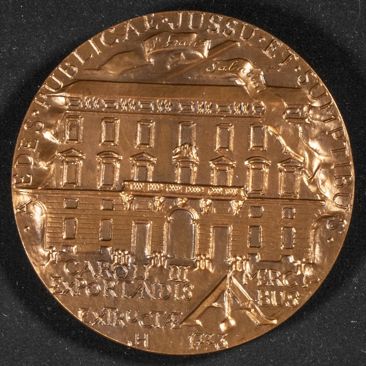 ESPAÑA. II Centenario Antigua Aduana de Madrid (Ae. 336,00g/91mm). 1973. FNMT. Obra de Julio López Hernández. SC. Tirada muy escasa.