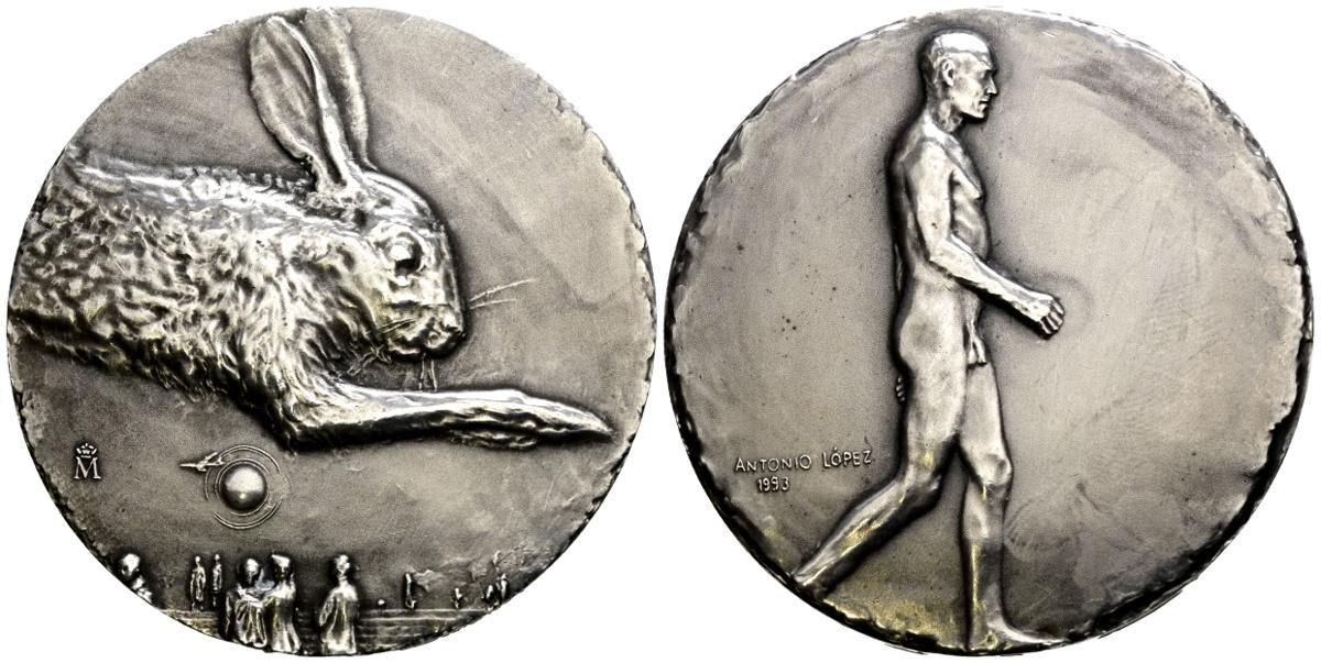 ESPAÑA. Antonio López. "El Hombre y la Libre" (Ar. 124,80g/60mm). Premio Tomás Francisco Prieto. 1992. Fundación Casa de la Moneda. Tirada de sólo 40 unidades (6/40). Incluye certificado de autenticidad y estuche original de terciopelo. Muy escasa.