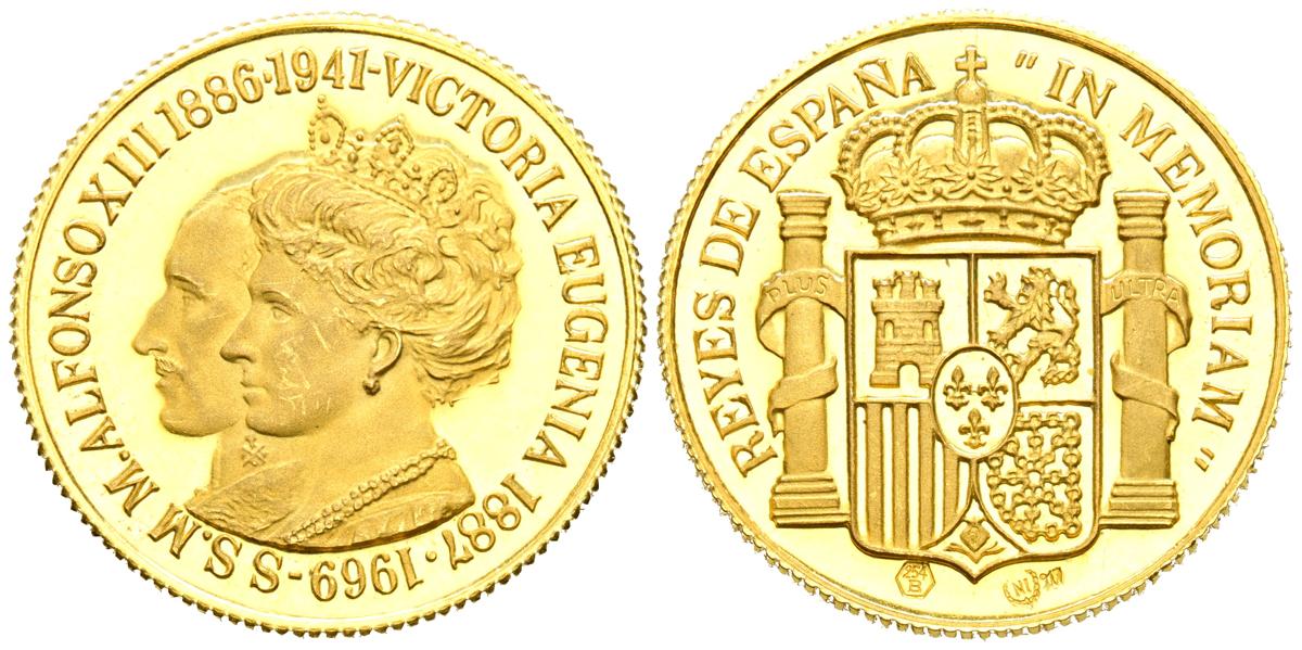 JUAN CARLOS I. Medalla. (Au. 6,98g/24mm). SS.MM. ALFONSO XIII 1886·1941-VICTORIA EUGENIA 1887·1969. Oro de 0,917 milésimas. PROOF.