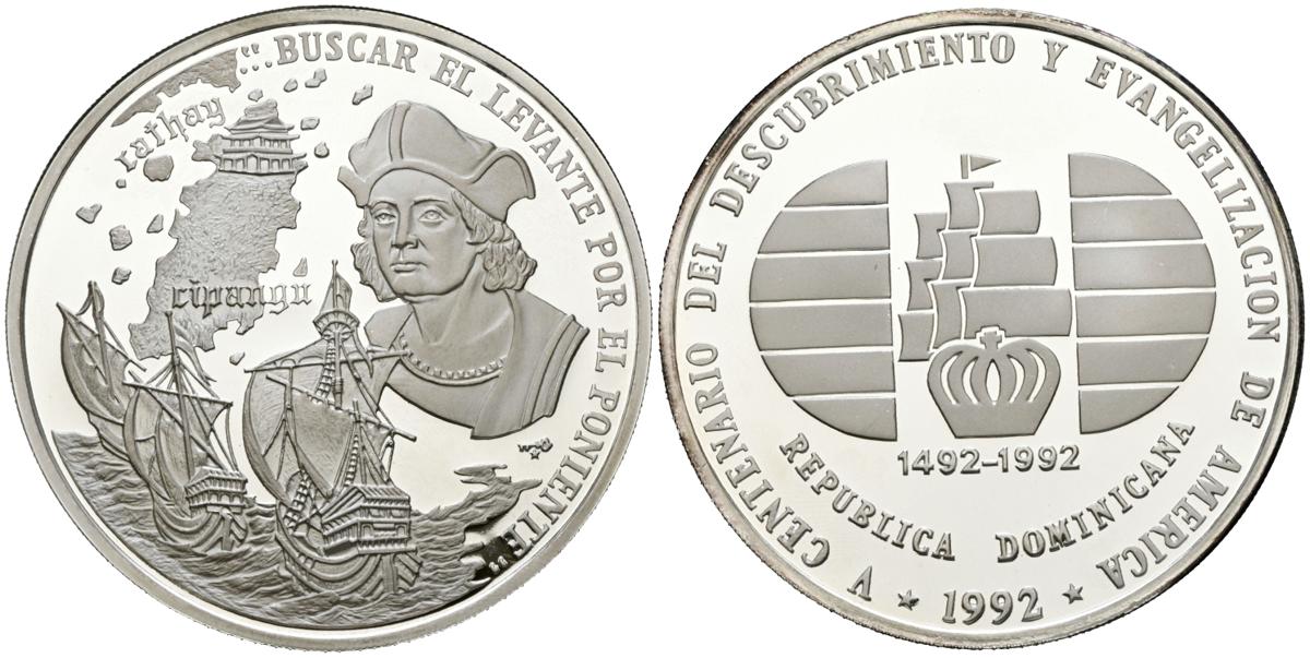 REPÚBLICA DOMINICANA. V Centenario del Descubrimiento de América (Ar. 155,49g/65mm). 1992. PROOF. Incluye cápsula.