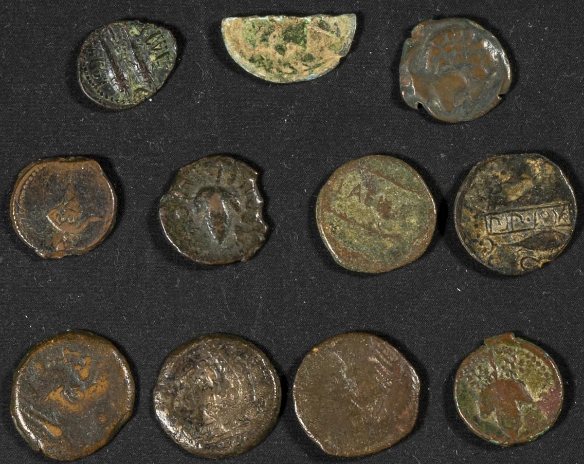 HISPANIA ANTIGUA. Conjunto de 11 monedas de bronce de distintas cecas ibéricas entre las que destaca un As partido de Luco Augusto y una pieza de Gades. A EXAMINAR.