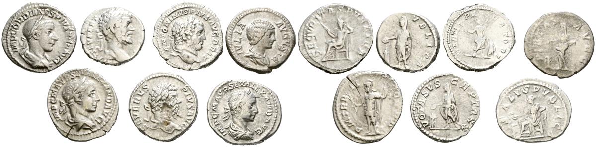 IMPERIO ROMANO. Conjunto de 7 Denarios de distintos emperadores. A EXAMINAR.