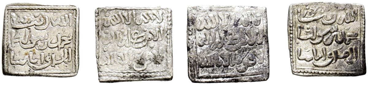 HISPANO ARABE. Conjunto de 4 piezas Almohades Anónimas, citando a Al-Madi. (Medina 20.1a). Diferentes estados de conservación. A EXAMINAR.