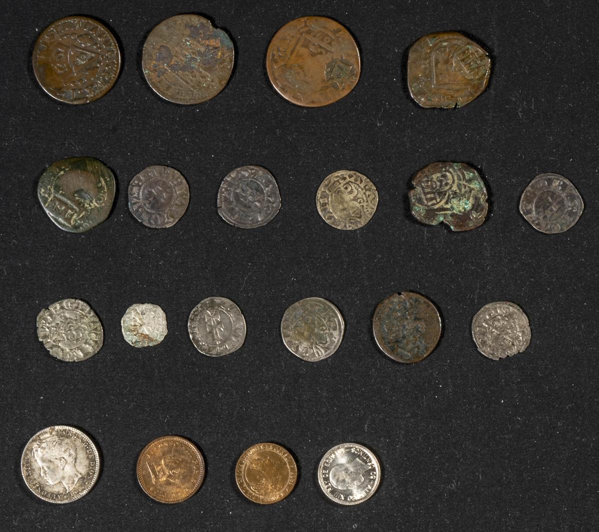ESPAÑA. Interesante y variado conjunto de 19 piezas acuñadas en una amplia horquilla cronológica, encontrando desde monedas medievales hasta de Alfonso XIII, pasando por el periodo de Monarquía Española. Incluye cobres con resellos, ejemplares en plata y algunas monedas en alta calidad . Diferentes estados de conservación. A EXAMINAR