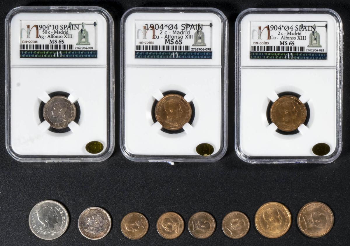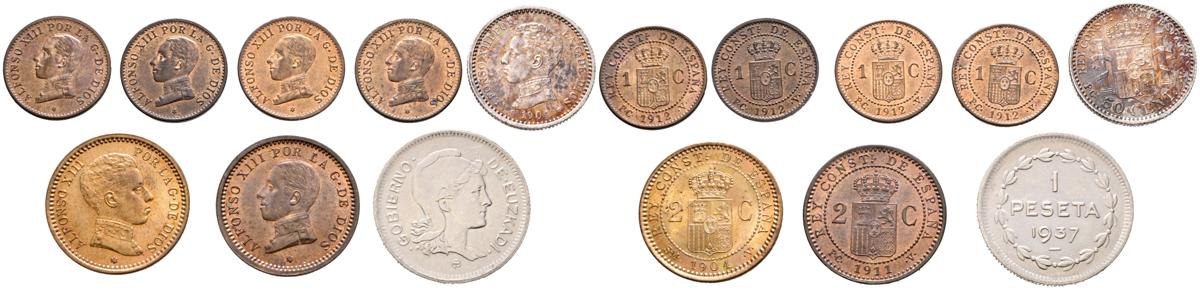CENTENARIO DE LA PESETA. Magnífico lote formado por 11 monedas de diferentes módulos, fechas y materiales en calidades muy altas( EBC+/SC). Destacan 3 piezas encapsuladas por NN Coins El conjunto se completa con 1 Peseta del Gobierno de Euzkadi de 1937. A EXAMINAR.