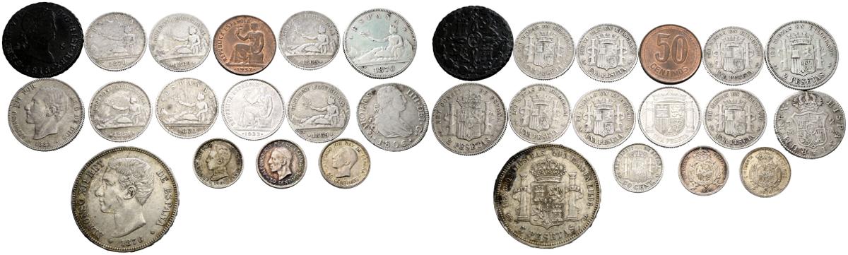 CENTENARIO DE LA PESETA. Interesante conjunto de platas del Centenario con una gran variedad de módulos y fechas. El conjunto, 16 pìezas en total, se completa con un par de piezas de la Monarqía Española y de la II República. A EXAMINAR