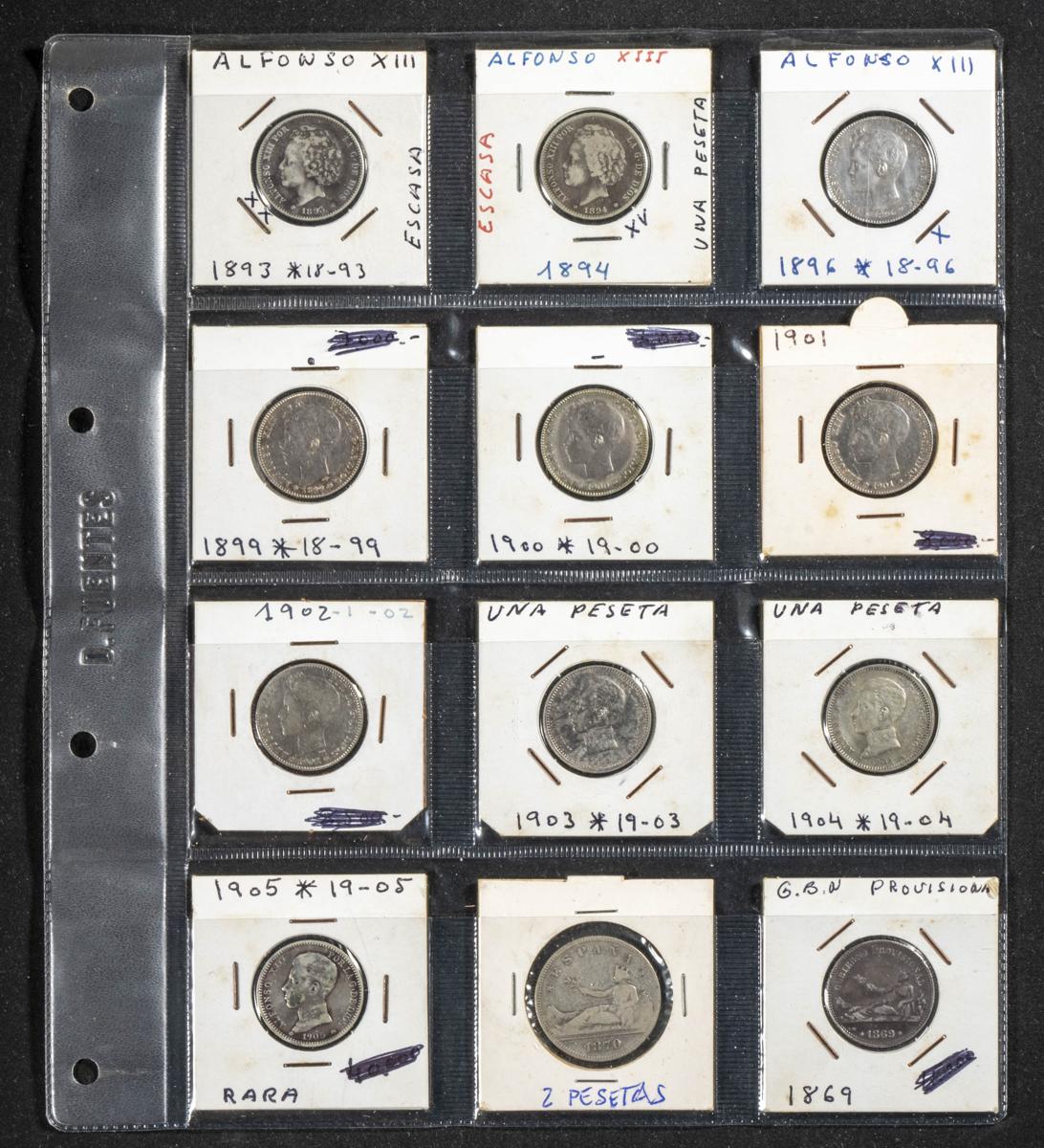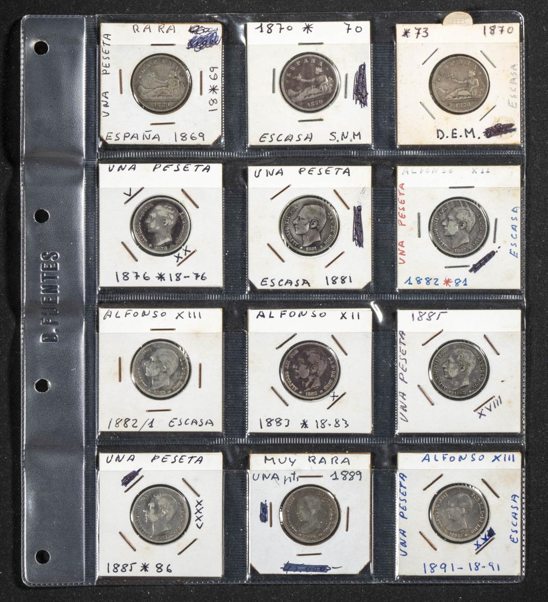 CENTENARIO DE LA PESETA. Interesante y completa colección de más de 60 piezas de plata de de diferentes fechas y módulos (incluye 33 monedas de 5 Pesetas). Diferentes estados de conservación. A EXAMINAR.