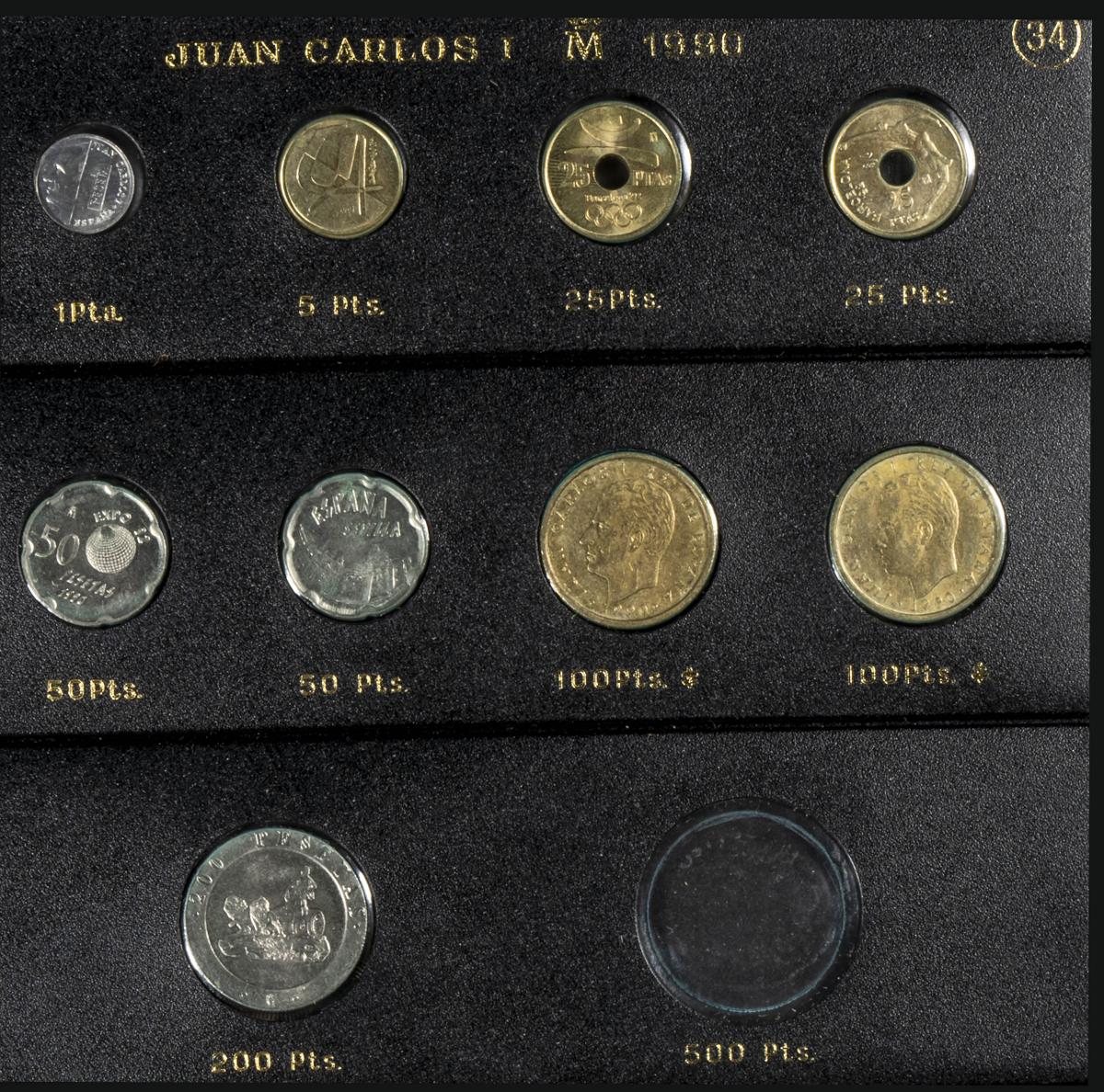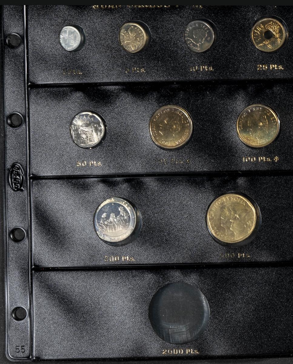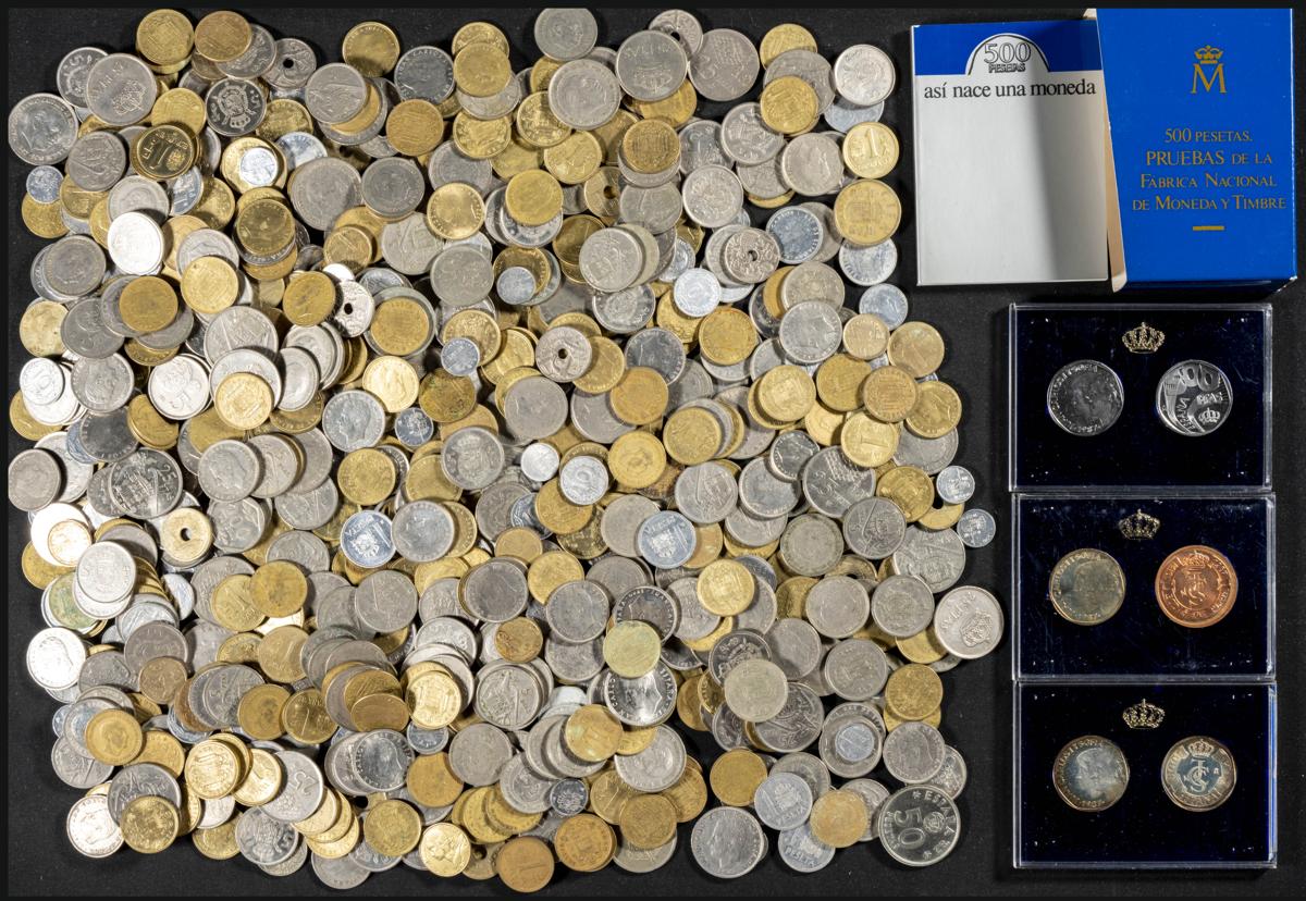 ESTADO ESPAÑOL Y JUAN CARLOS I. Extenso y variado conjunto formado por cientos de monedas de ambos periodos y con una gran variedad de módulos y fechas representadas. El conjunto incluye el estuche oficial de 500 Pesetas en prueba "Así nace una Moneda" emitido por la FNMT así como parte de la colección expuesta en álbum Pardo. Diferentes estados de conservación. A EXAMINAR.