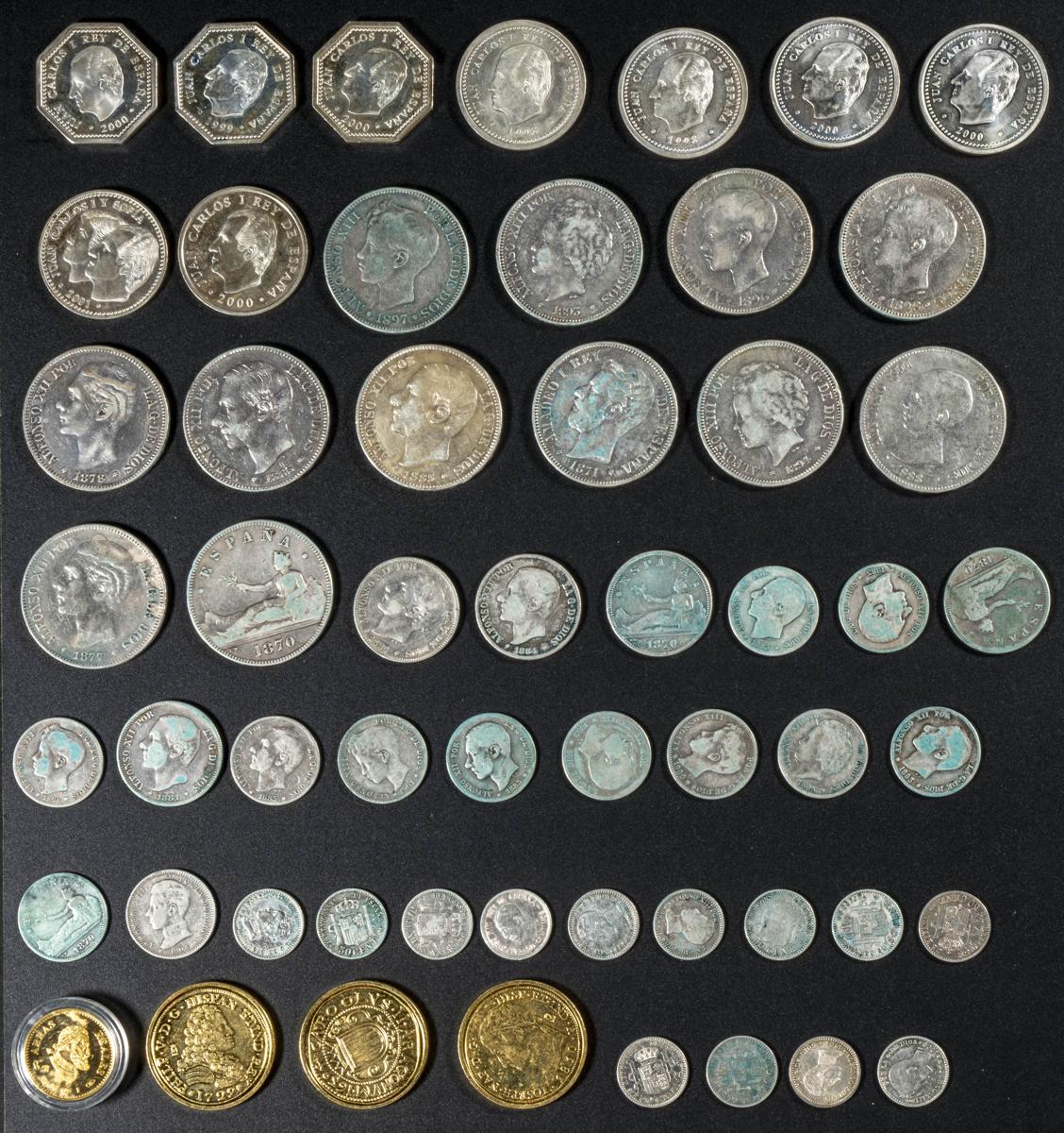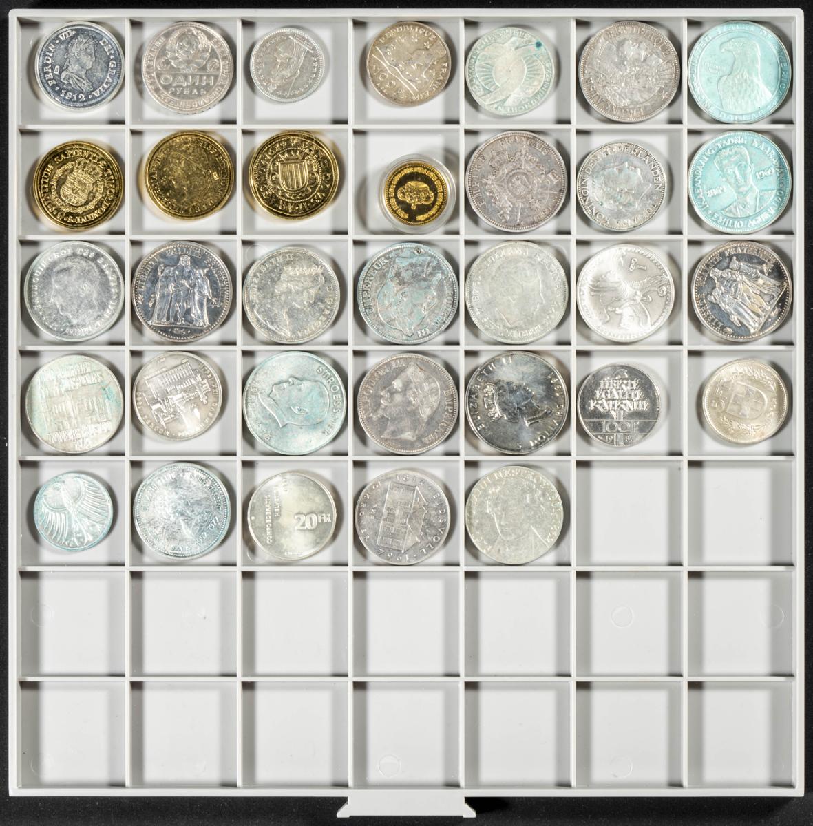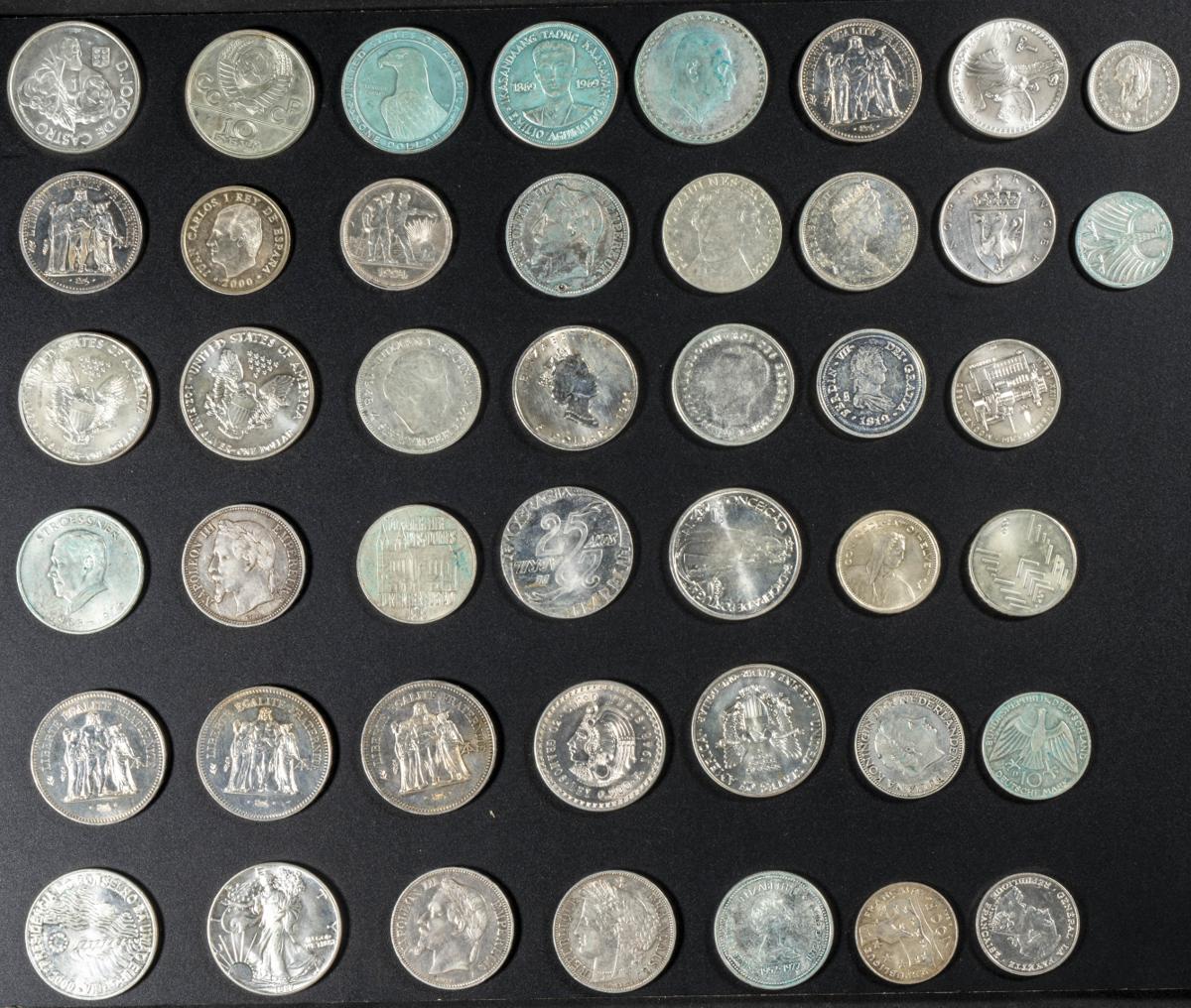 Interesante lote de decenas de monedas de plata de diferentes países, destacando alguna pieza del Centenario de la Peseta o unos 50 Francos franceses. Peso bruto aproximado: 1,5 Kilogramos. A EXAMINAR.